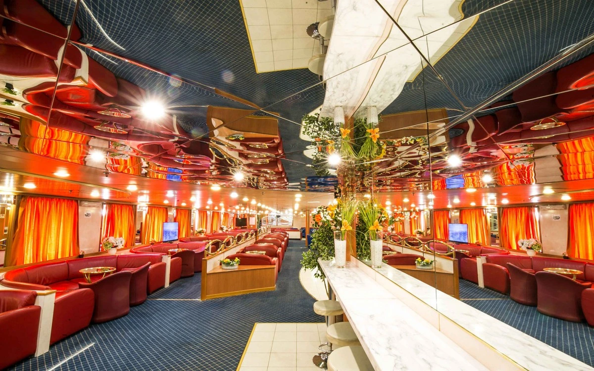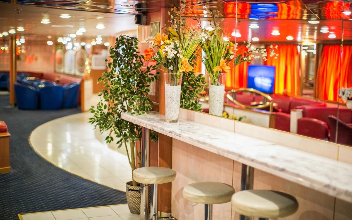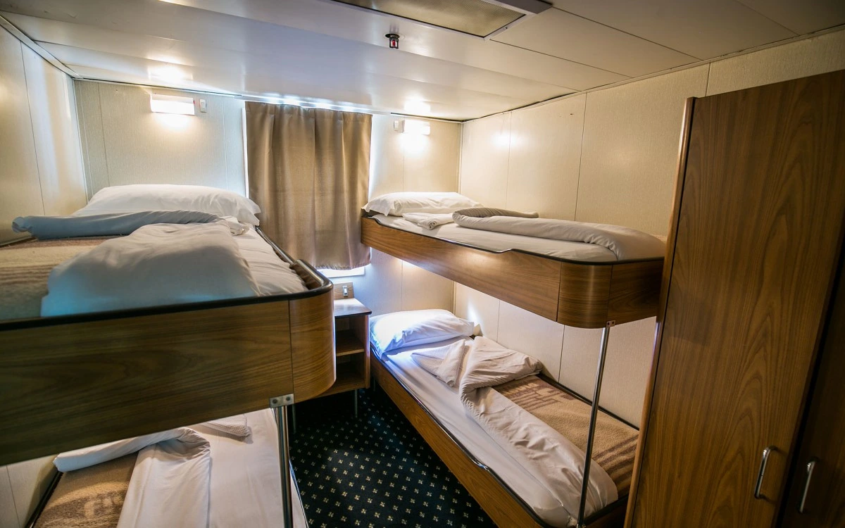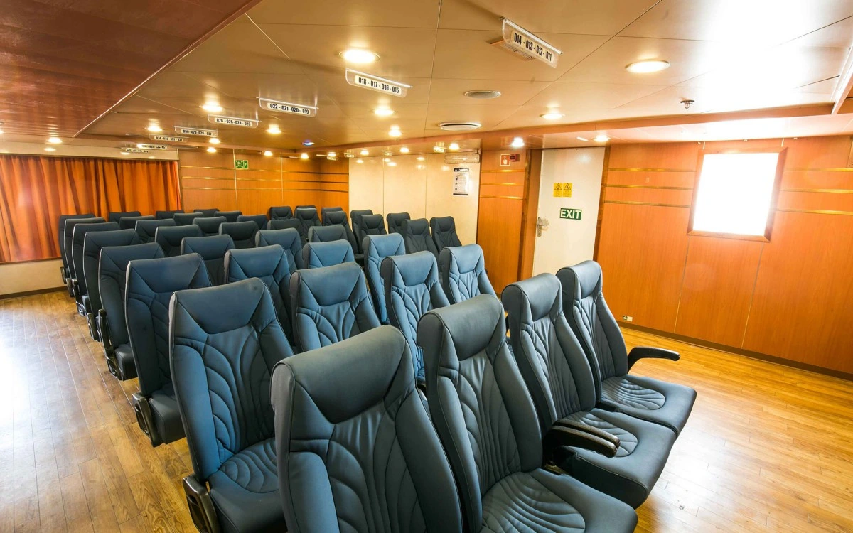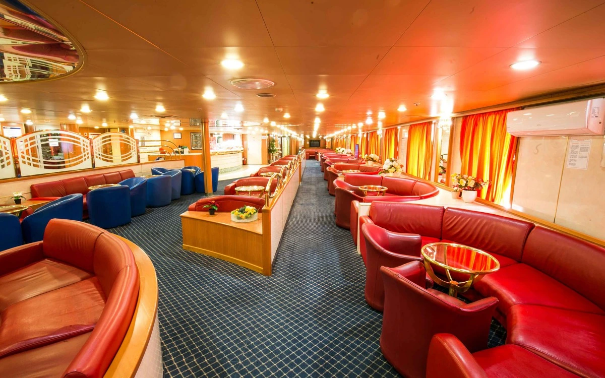 Le sistemazioni a bordo includono cabine confortevoli e poltrone reclinabili, progettate per offrire relax durante il viaggio. Le aree comuni sono climatizzate e spaziose, ideali per godersi la navigazione in totale comfort.