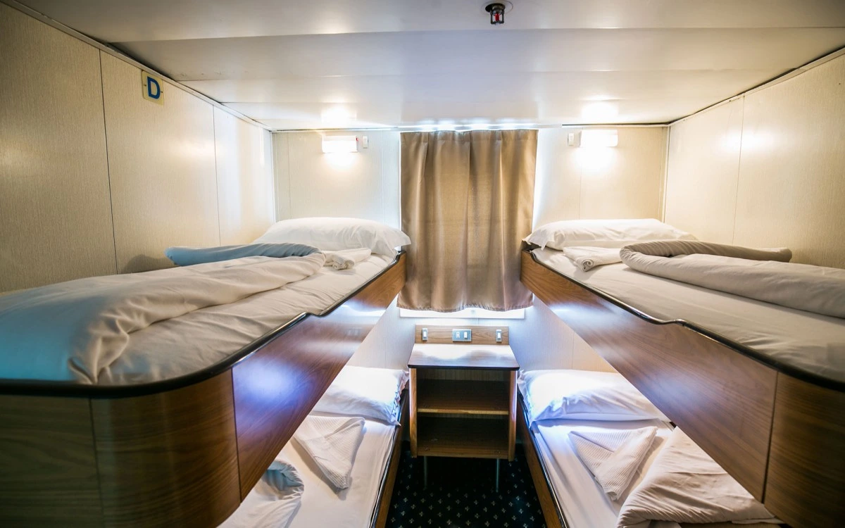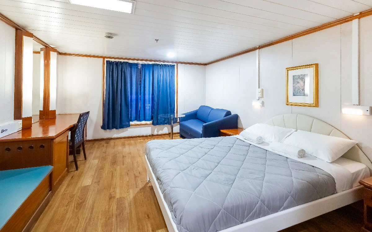 Le sistemazioni su AF Mia includono diverse cabine e poltrone reclinabili, progettate per massimizzare il comfort dei passeggeri durante la traversata. Le aree comuni sono ampie e climatizzate, ideali per il relax e il sociale.