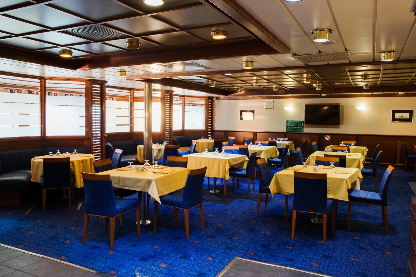A bordo, i passeggeri possono godere di una varietà di opzioni gastronomiche. Diversi bar e ristoranti servono una vasta gamma di cibi, dai piatti veloci a quelli più elaborati, garantendo soluzioni per ogni palato.
