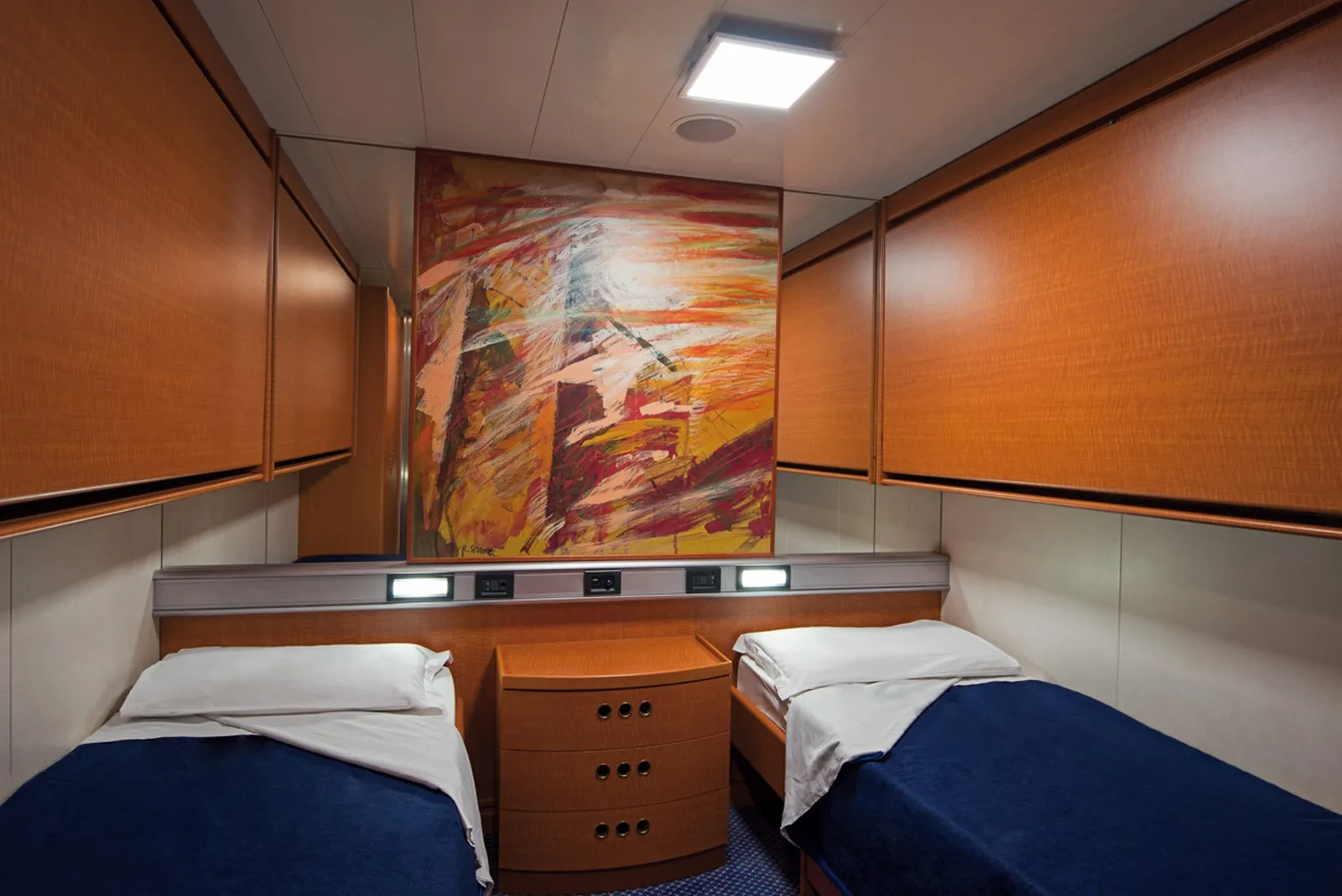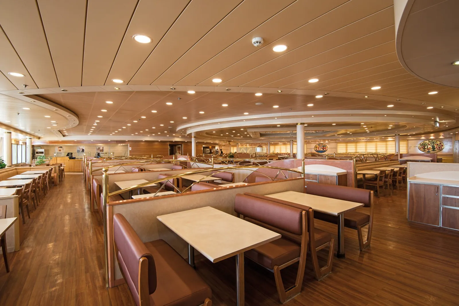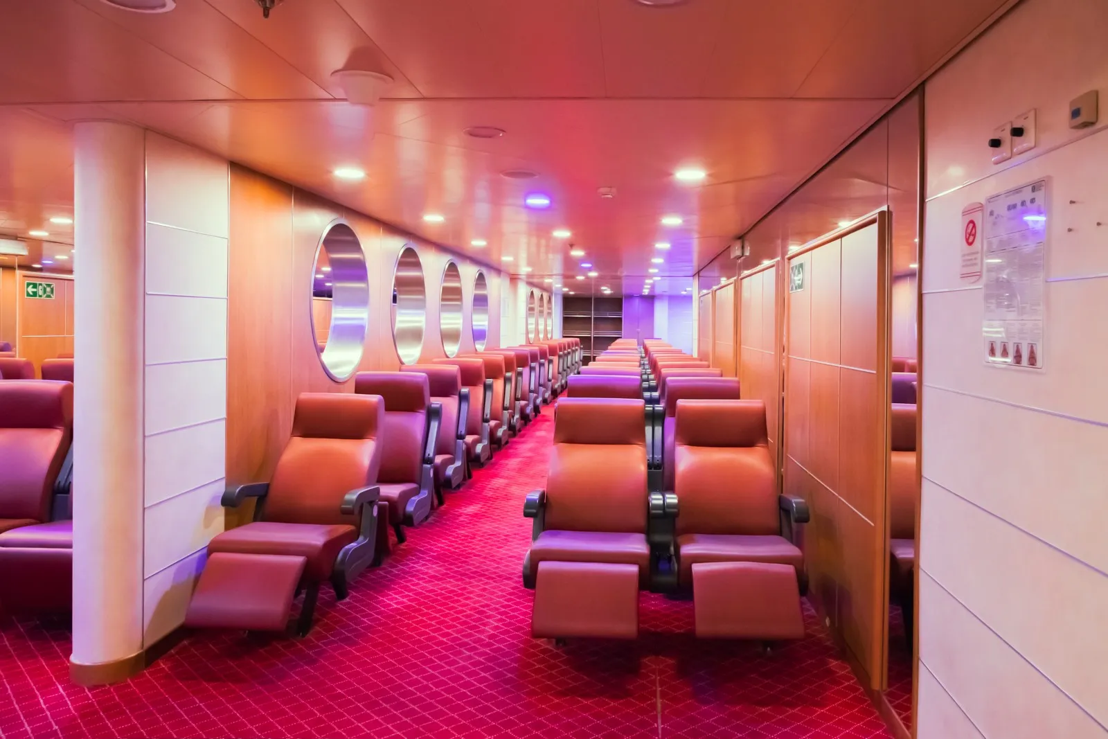 La nave offre una vasta gamma di sistemazioni, inclusi confortevoli saloni e diverse opzioni di sedute. Per i viaggi più lunghi, sono disponibili cabine e poltrone reclinabili, tutte dotate di climatizzazione per assicurare il massimo comfort durante la navigazione.