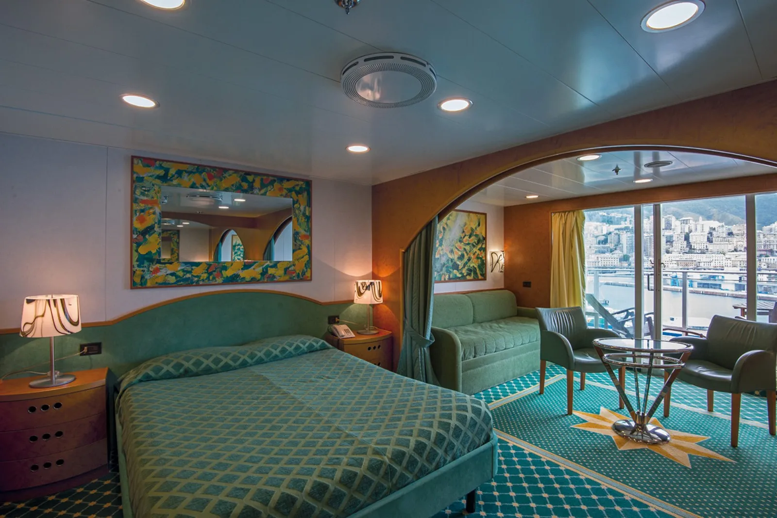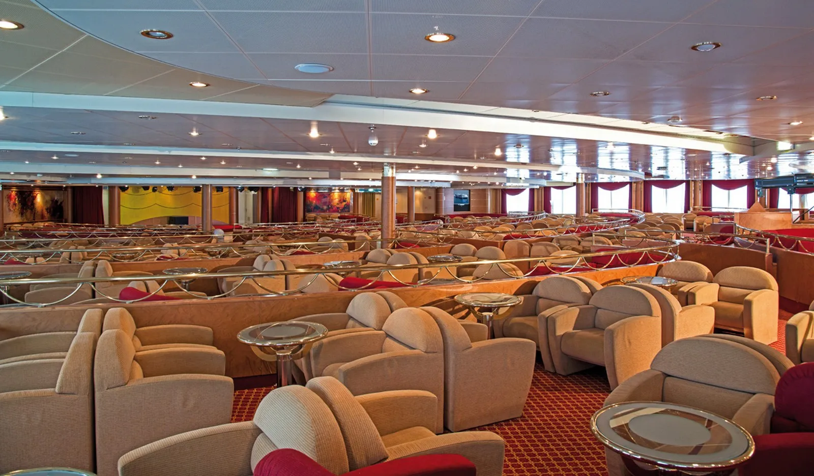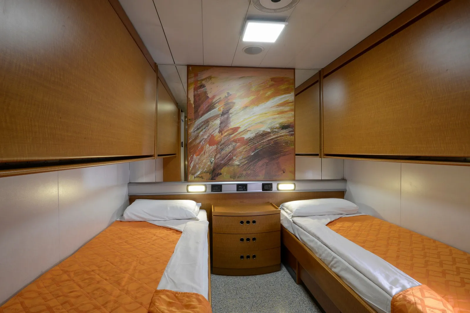 La nave offre una vasta gamma di sistemazioni, inclusi confortevoli saloni e diverse opzioni di sedute. Per i viaggi più lunghi, sono disponibili cabine e poltrone reclinabili, tutte dotate di climatizzazione per assicurare il massimo comfort durante la navigazione.