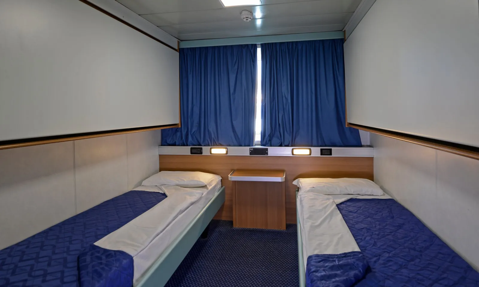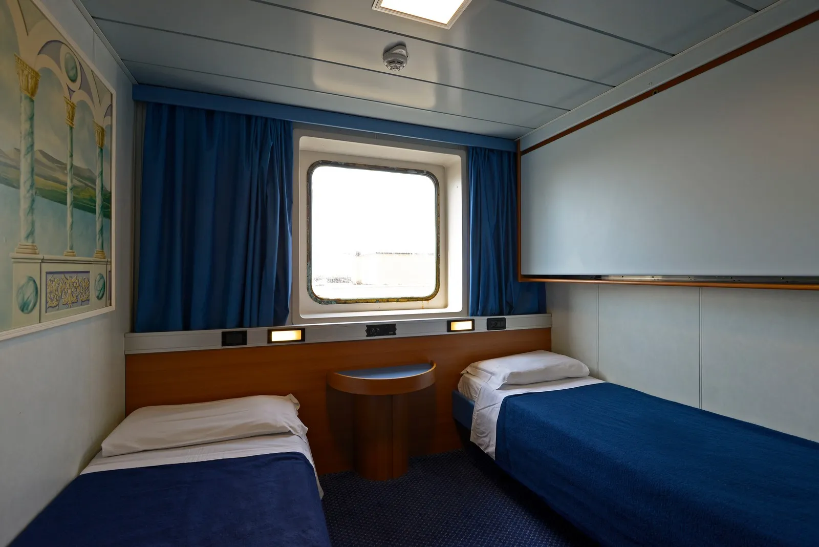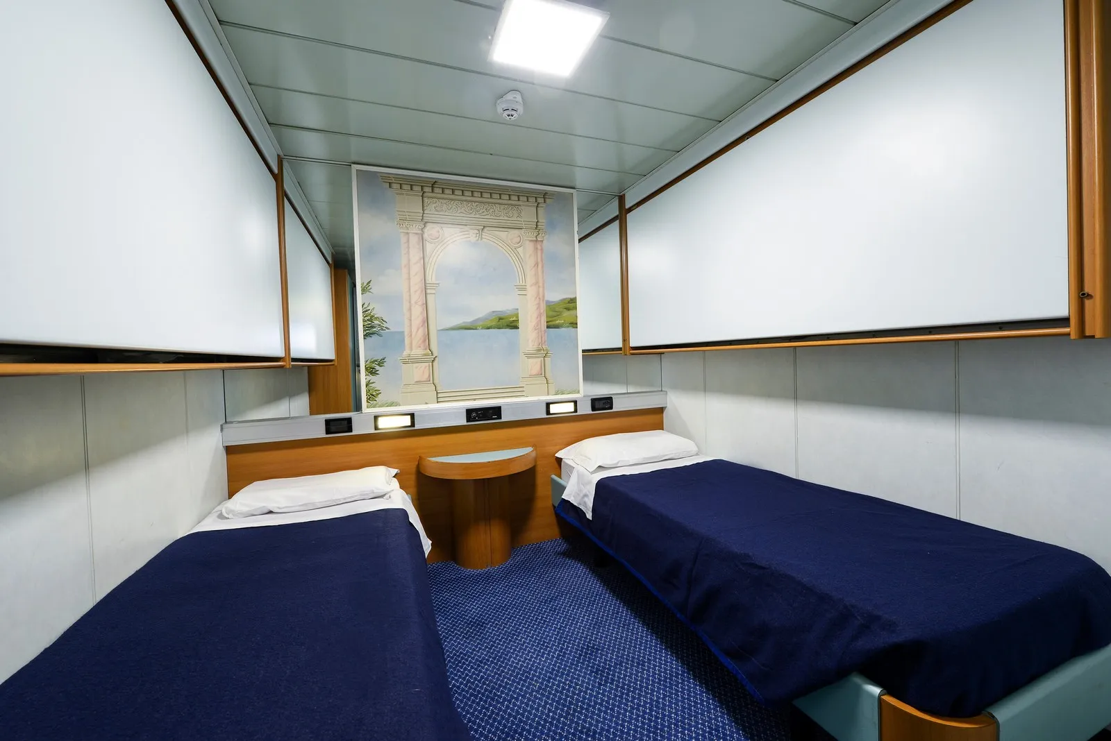 La nave offre un’ampia gamma di sistemazioni, inclusi saloni spaziosi e cabine confortevoli, dotate di tutti i comfort moderni per garantire una traversata piacevole e rilassante.