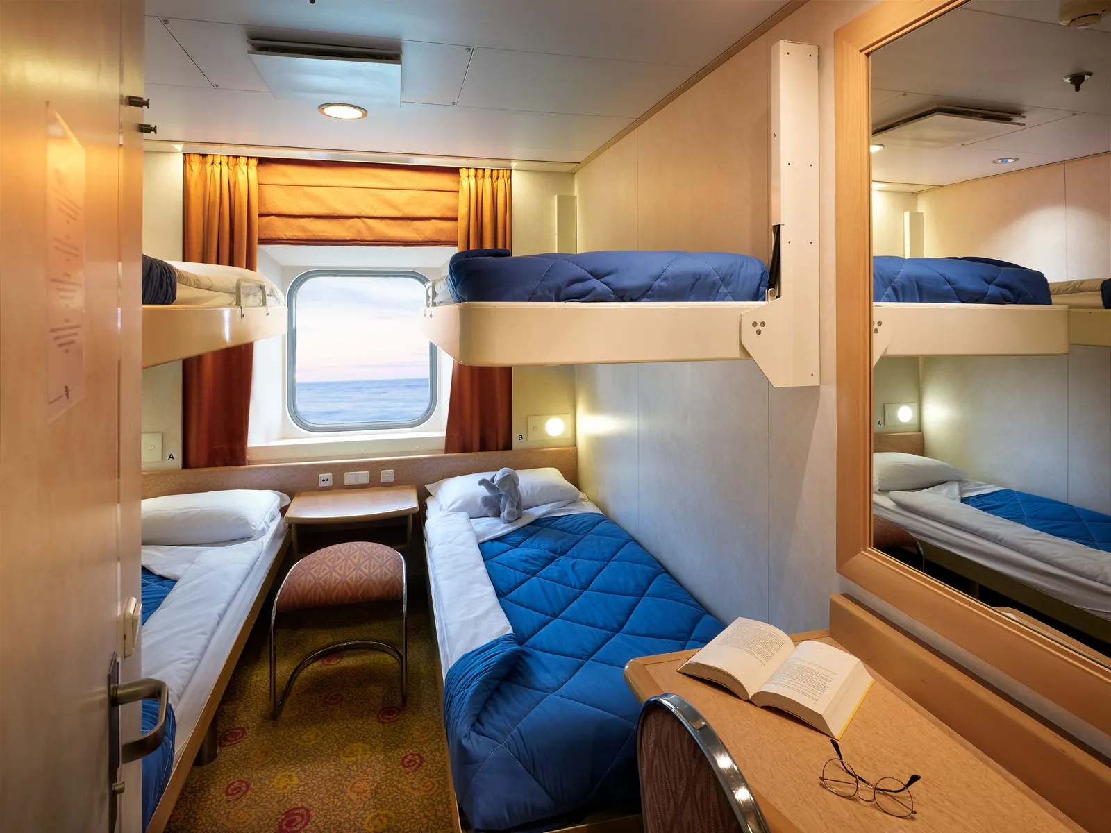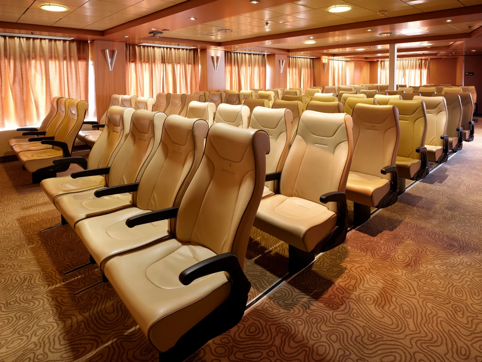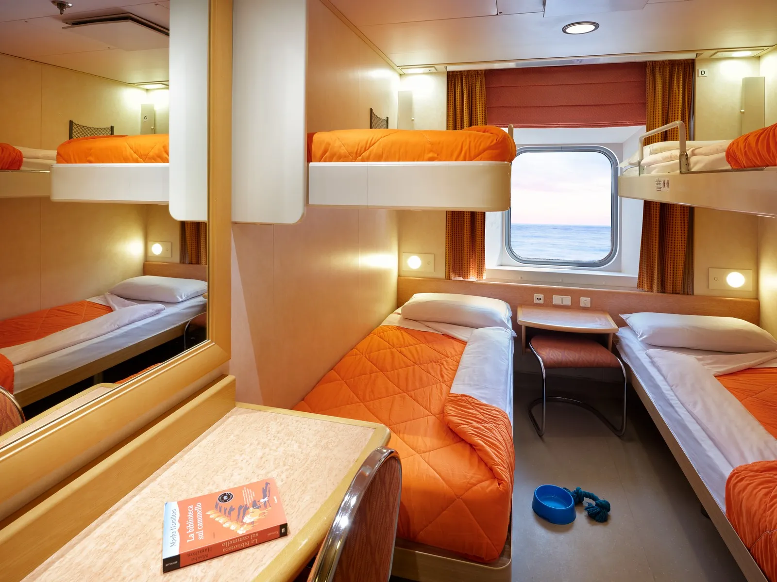 La nave offre varie opzioni di alloggio, dalle confortevoli cabine ai saloni con poltrone reclinabili, garantendo il comfort durante le traversate. Le aree comuni sono ampie e ben climatizzate, rendendo il viaggio piacevole e rilassante.