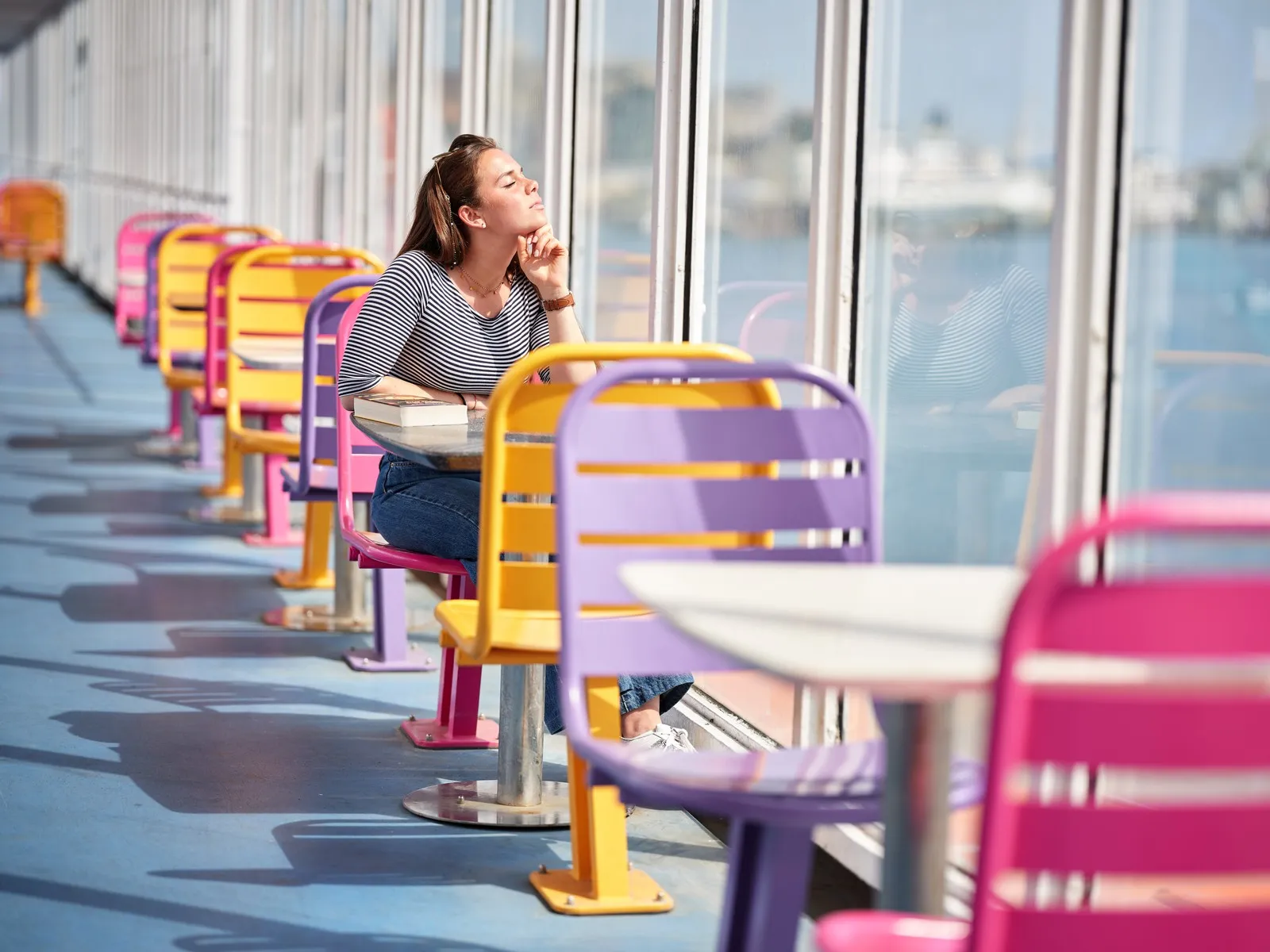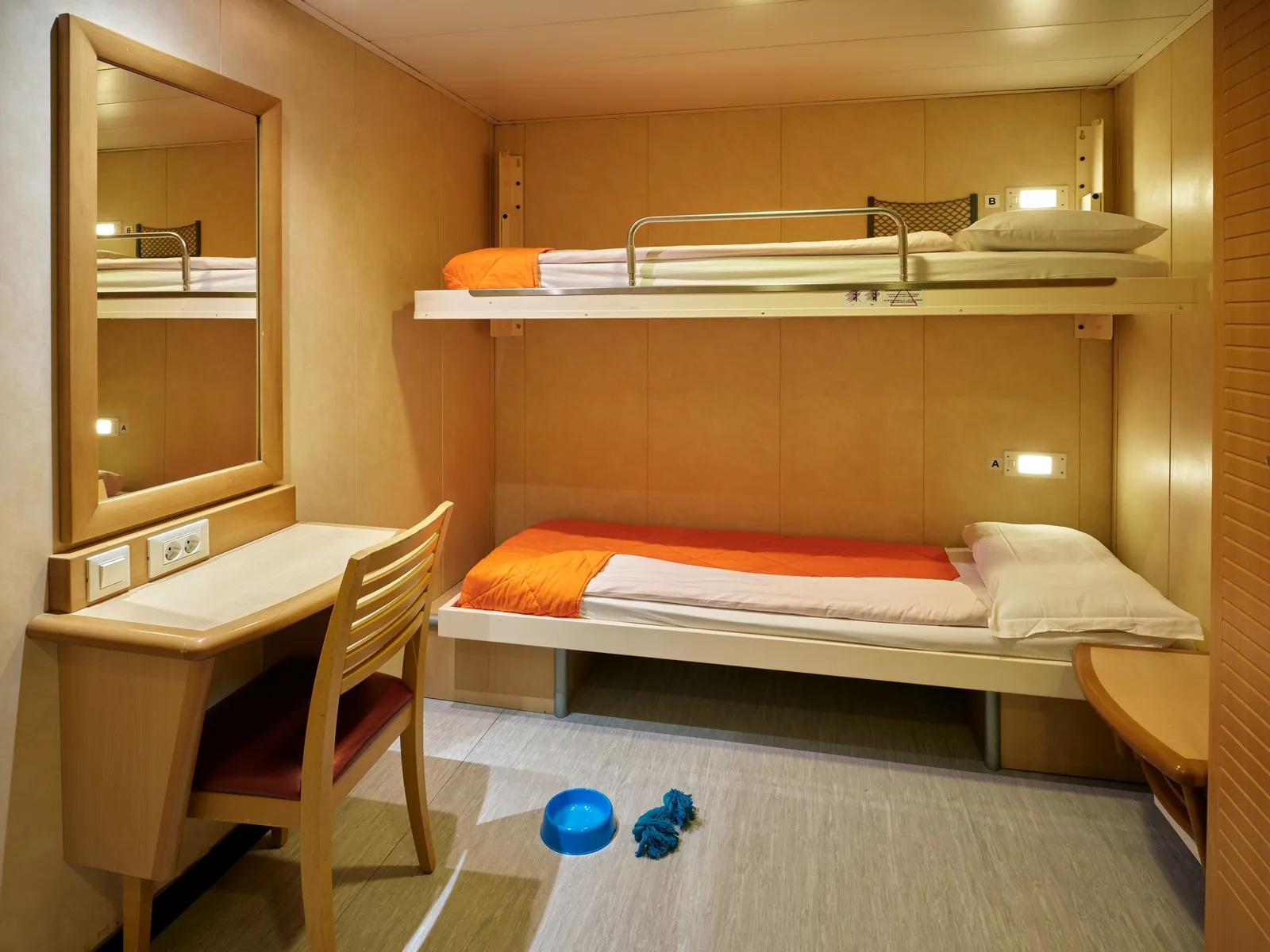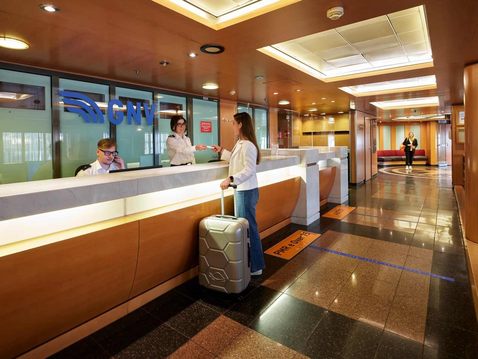 La nave offre varie opzioni di alloggio, dalle confortevoli cabine ai saloni con poltrone reclinabili, garantendo il comfort durante le traversate. Le aree comuni sono ampie e ben climatizzate, rendendo il viaggio piacevole e rilassante.