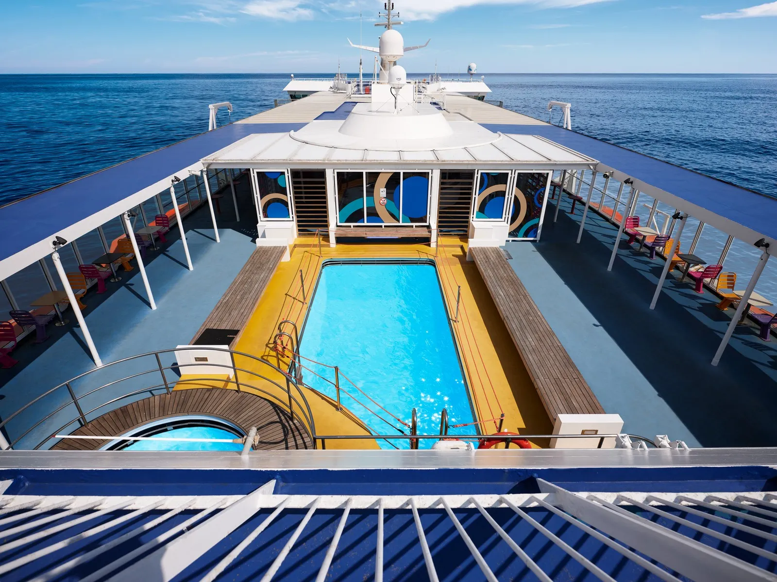 Le ampie aree esterne permettono ai passeggeri di godere delle vedute marine e dell’aria fresca, ideali per chi desidera rilassarsi e ammirare il panorama durante il viaggio.