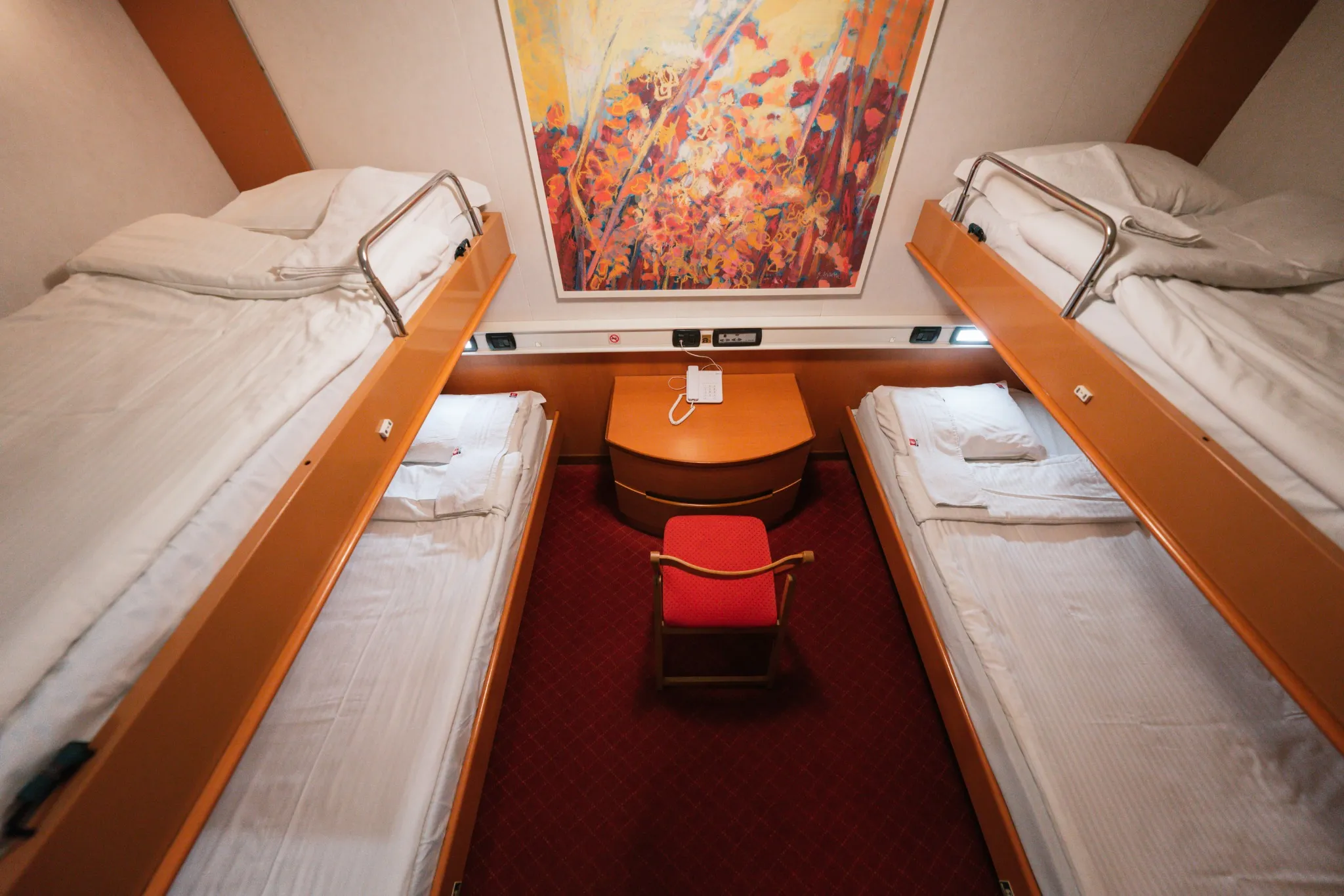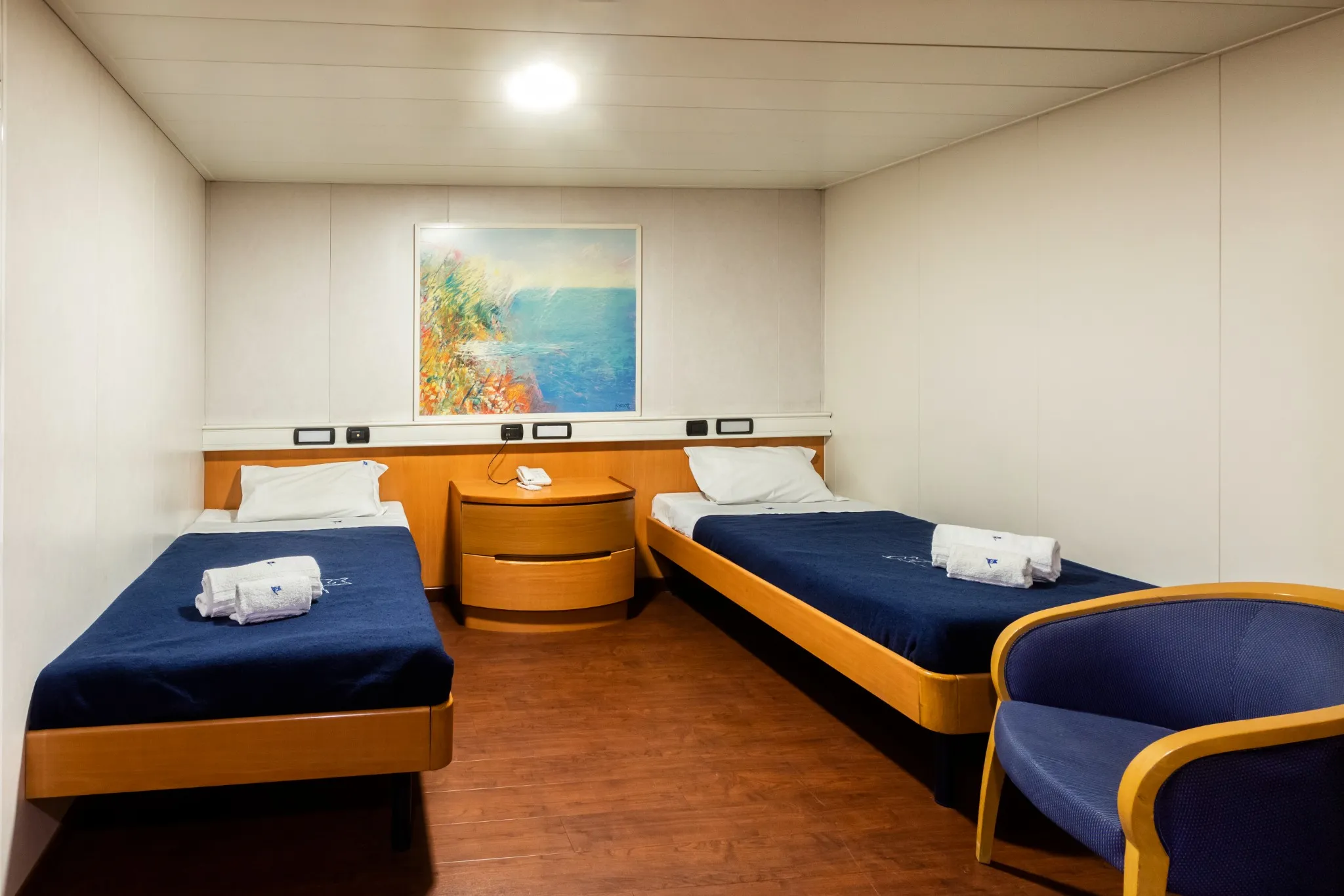 Le navi dispongono di 414 cabine, progettate per offrire comfort durante i viaggi notturni. Le sistemazioni variano da lussuose suite a cabine più funzionali per famiglie o gruppi.