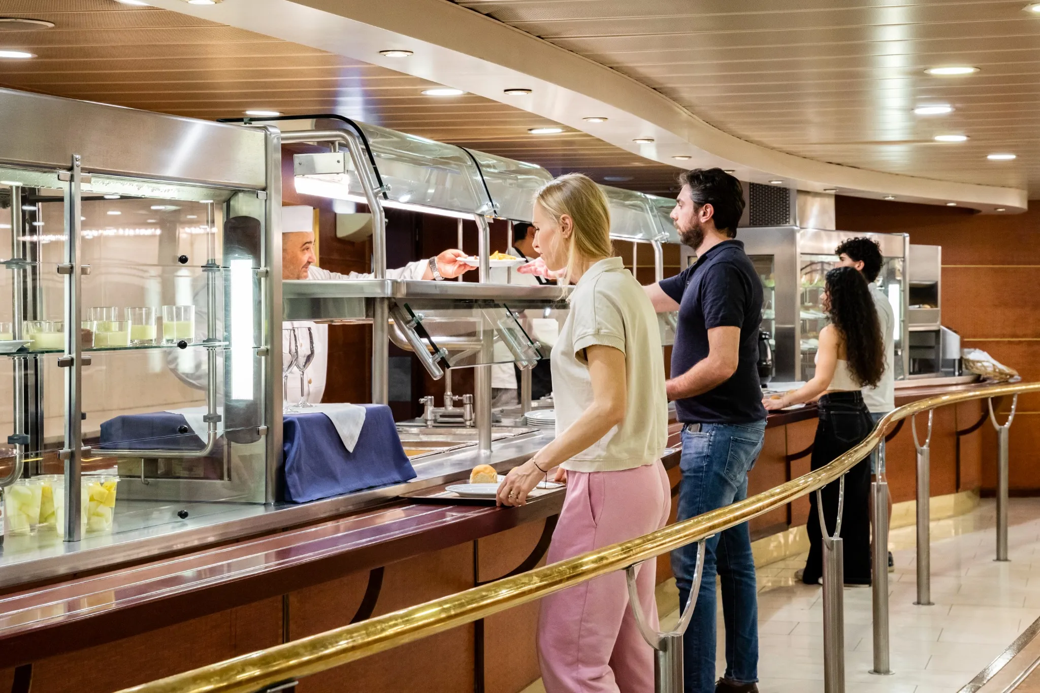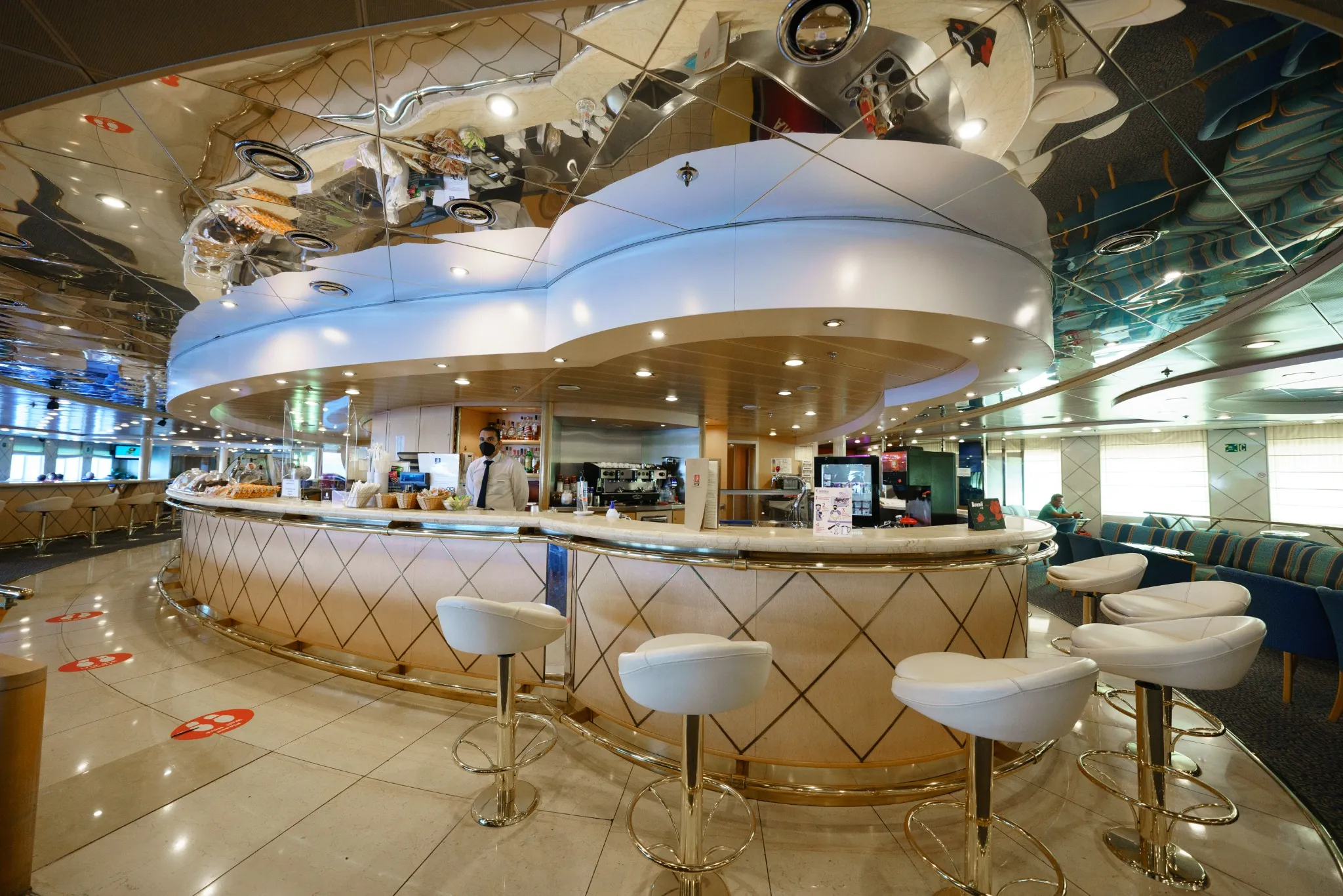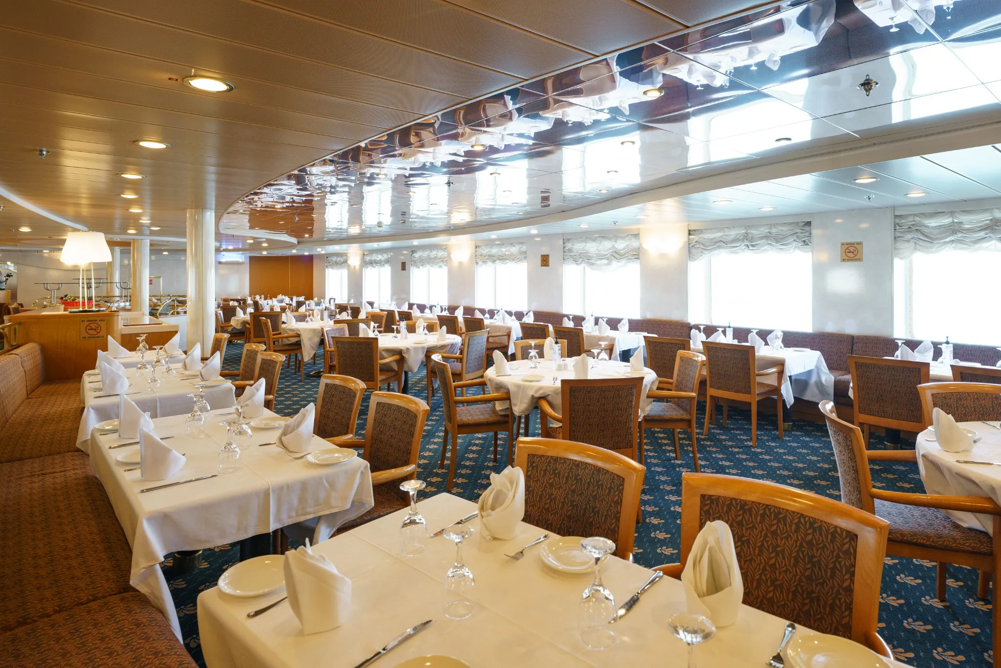 A bordo si trovano vari ristoranti e bar, ognuno con un proprio stile culinario, offrendo piatti che spaziano dalla cucina locale a quella internazionale.