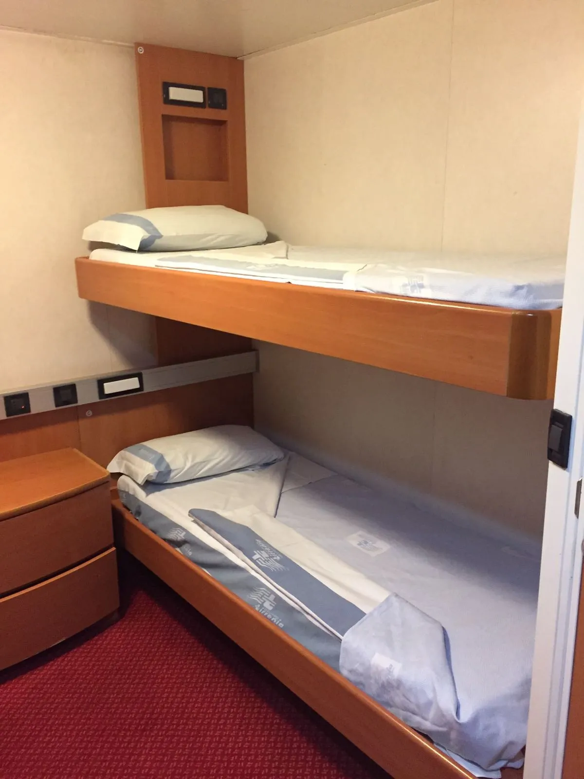 Le sistemazioni a bordo includono cabine spaziose e poltrone reclinabili, tutte dotate di comfort moderni per garantire una traversata rilassante. Le cabine sono disponibili in varie configurazioni, adatte sia a singoli passeggeri che a famiglie, e sono tutte climatizzate per assicurare il massimo comfort durante la navigazione.