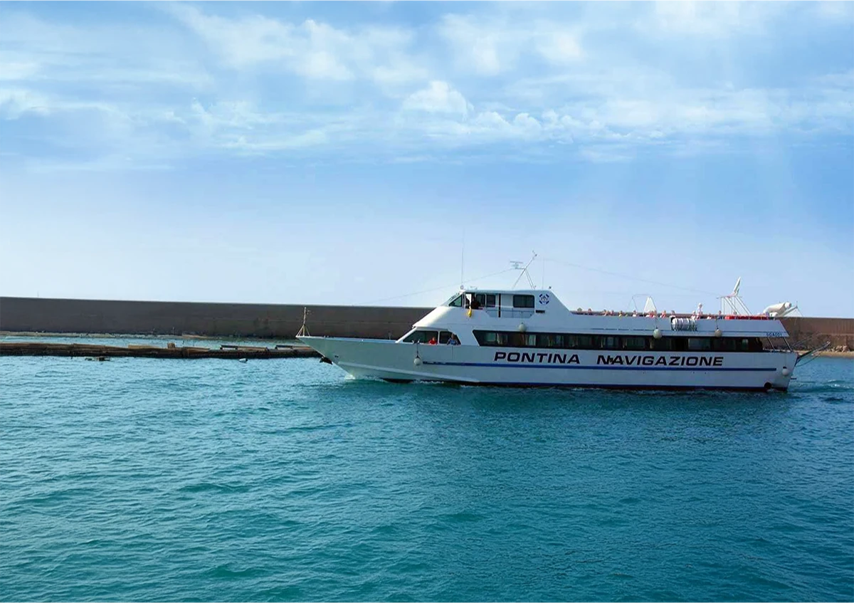 Pontina Navigazione offre collegamenti frequenti dalla costa laziale con l’Isola di Ponza, la più grande e importante dell’arcipelago pontino, servendo in particolare la tratta San Felice Circeo – Ponza. La motonave “Hipponion”, impegnata su questa tratta, offre ai naviganti alti standard di navigazione, interni moderni e ogni comfort. Il traghetto ospita circa 300 passeggeri, offrendo uno snack bar, comode poltrone, divanetti, zone relax all’aperto e al chiuso. Il personale di bordo sarà sempre disponibile in ogni fase del viaggio, per soddisfare tutte le esigenze dei naviganti. Lo staff fornirà ai viaggiatori tutte le informazioni in merito all’imbarco e lo sbarco dal traghetto nel rispetto delle norme di sicurezza. Sono ammessi animali a bordo, purché provvisti di biglietto e della certificazione veterinaria prevista a norma di legge.