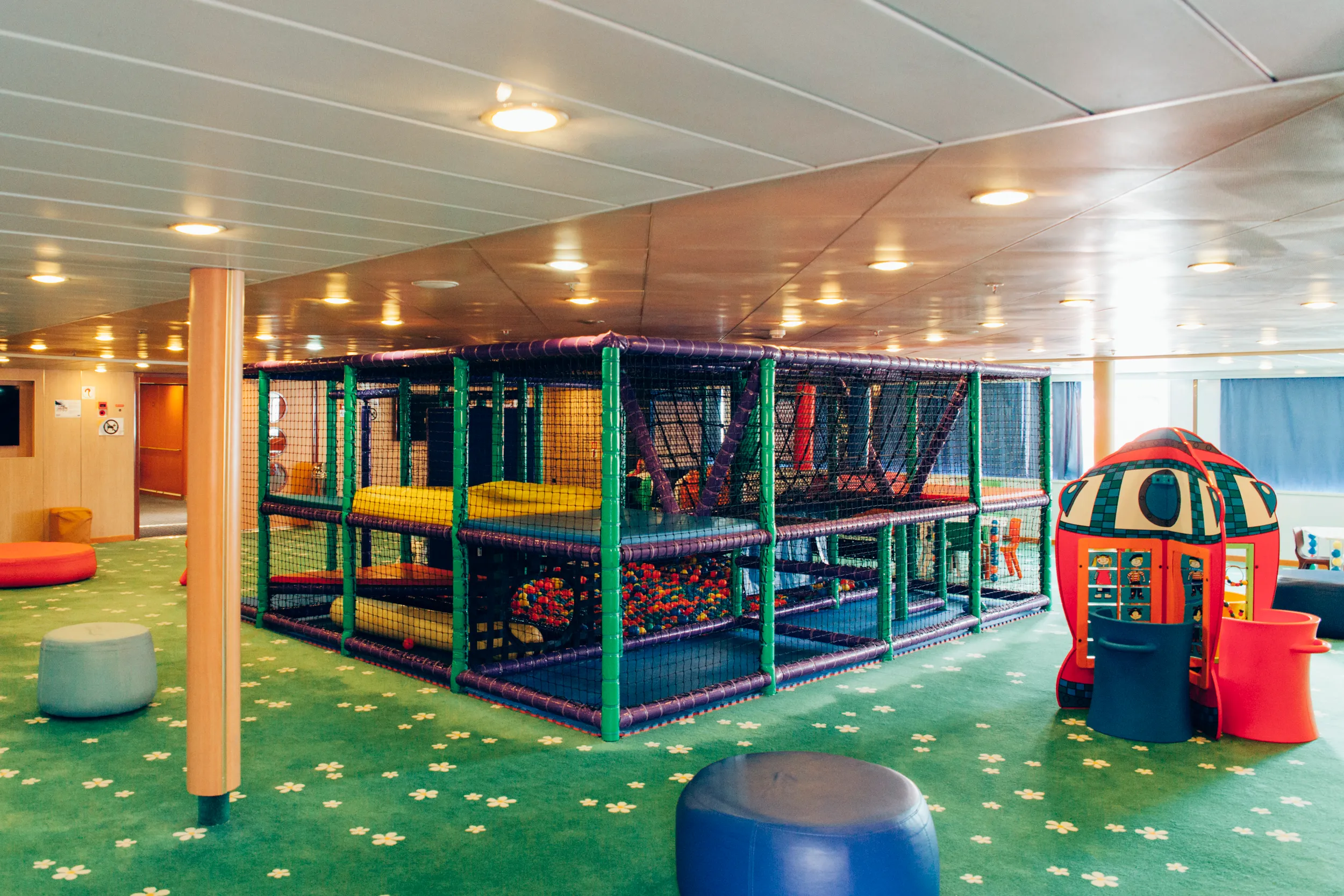 Le navi offrono spazi dedicati ai bambini, tra cui aree gioco sicure e ben attrezzate. Questi spazi sono progettati per garantire che anche i più piccoli possano divertirsi durante la traversata.