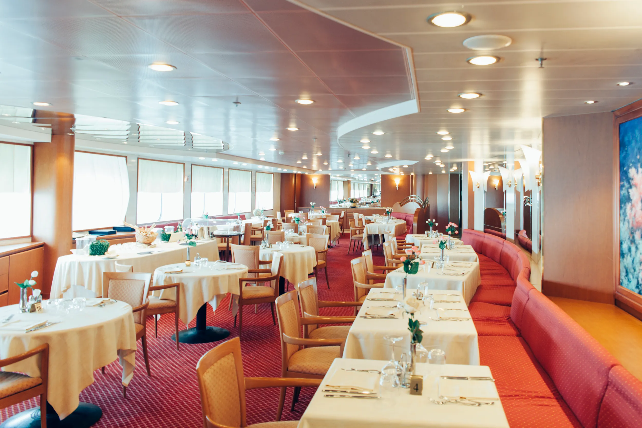 Le navi dispongono di diverse opzioni di ristorazione a bordo. I passeggeri possono scegliere tra vari bar e ristoranti che offrono una gamma di piatti e bevande. Gli spazi di ristorazione sono progettati per accogliere un gran numero di passeggeri e garantire un’esperienza gastronomica di qualità durante la navigazione.