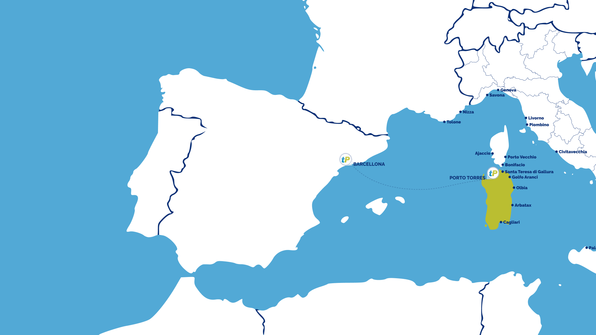 La tratta Barcellona – Porto Torres è coperta tutto l’anno, sebbene i collegamenti più frequenti siano previsti in alta stagione. La durata del viaggio è di 12 ore motivo per cui la navigazione si effettua in notturna. L’orario di partenza del traghetto è generalmente alle 22.00 o 23.00.