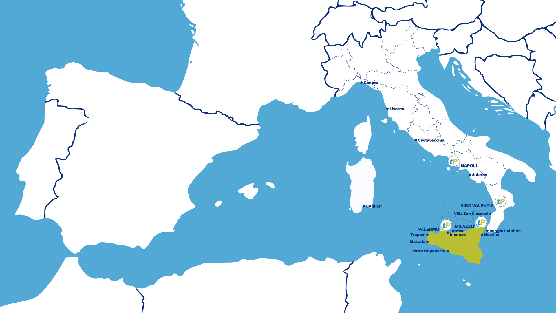 La compagnia Siremar gestisce i traghetti per la Sicilia in partenza da Napoli: il viaggio dura circa 16 ore.
